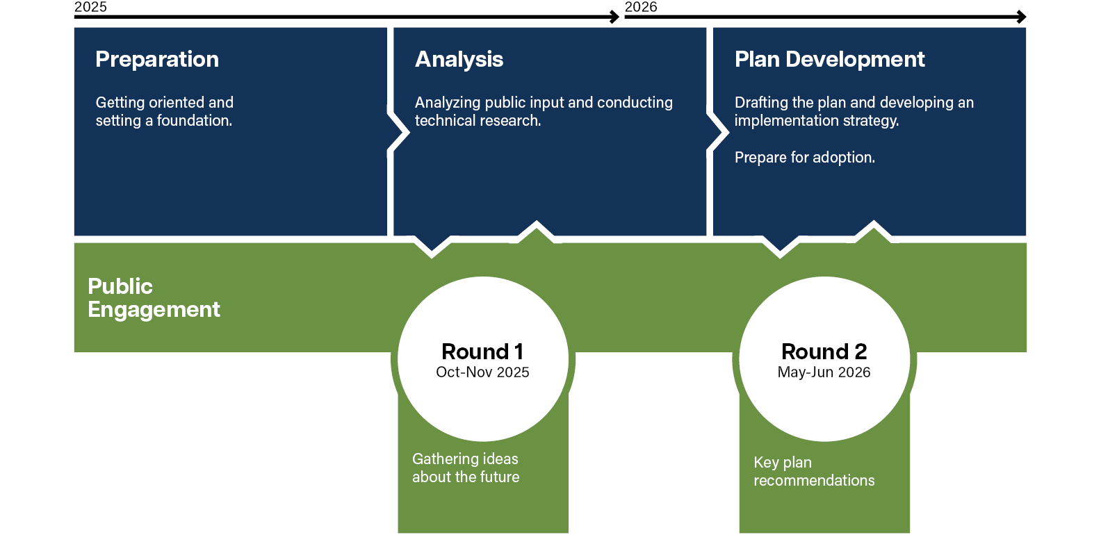 Yes! This is an open and inclusive process. There will be two periods of public engagement held during the planning process, which will include multiple in-person and online engagement opportunities. The first round of public engagement will take place in Fall 2025.